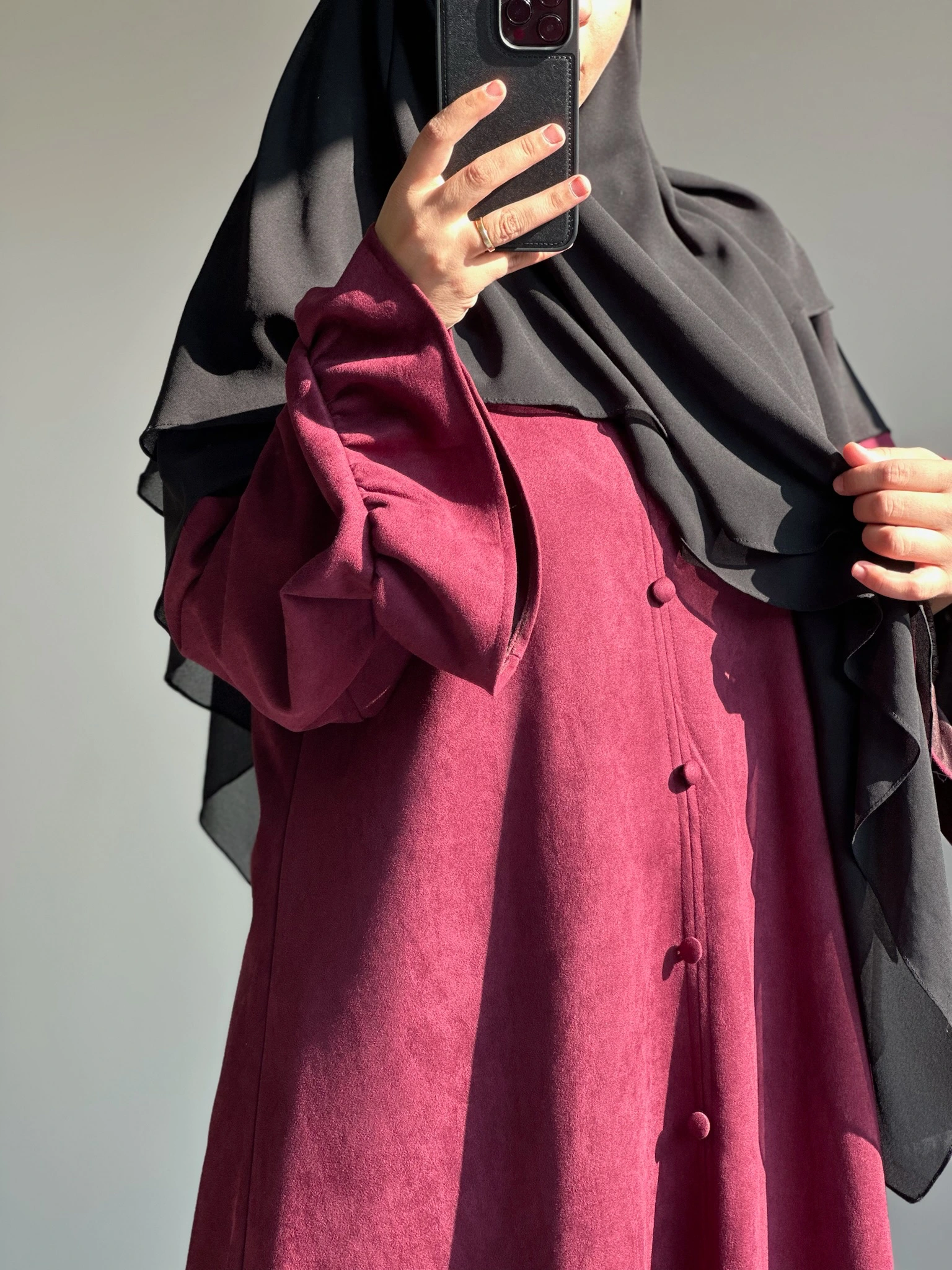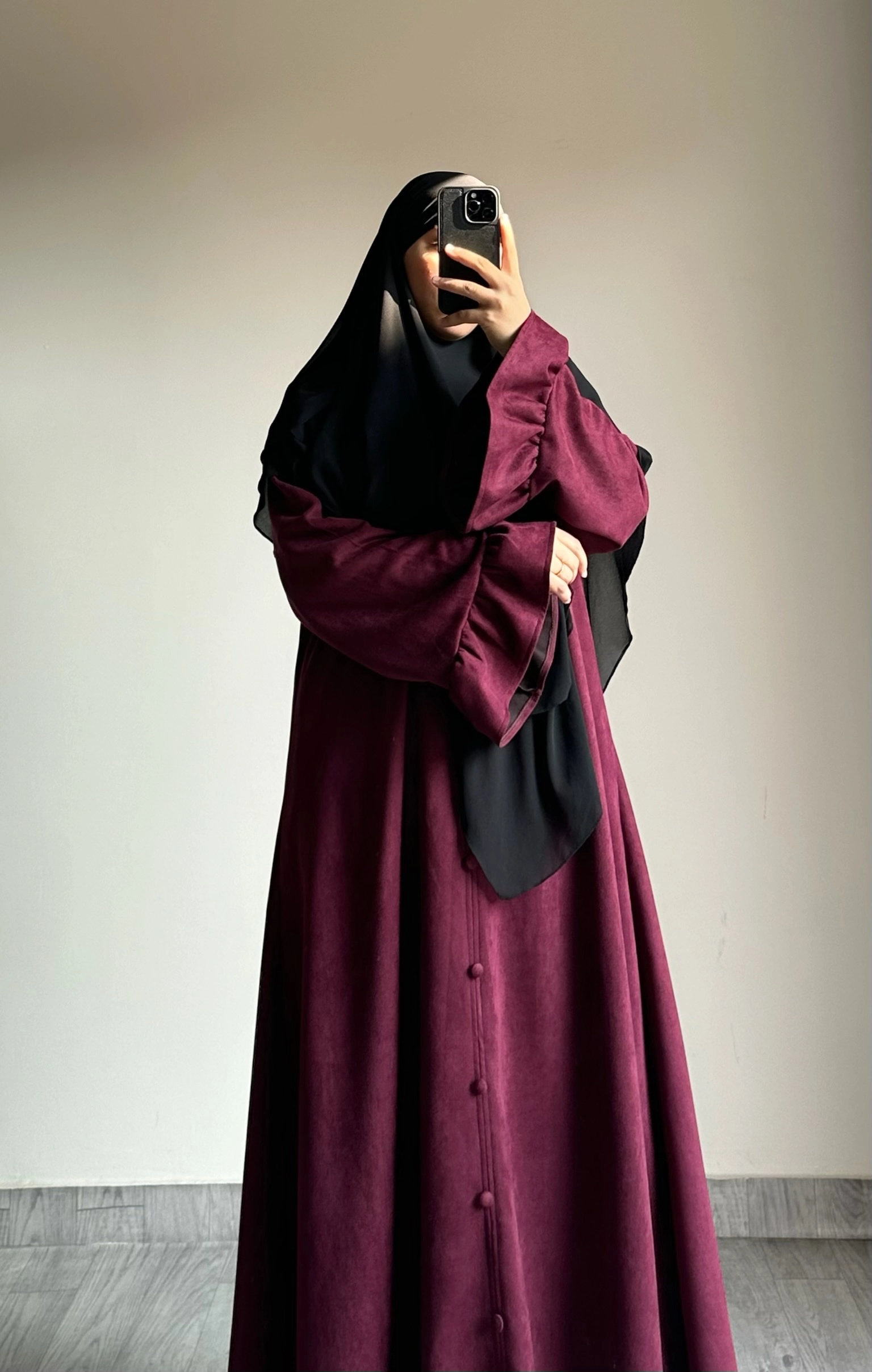 فستان شام من سترة حجاب لون بورجاندي